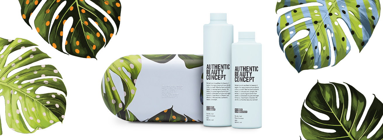Vybrané produkty Authentic Beauty Concept v každej sade od oceňovaných šampónov Authentic Beauty Concept až po výživné Authentic Beauty Concept kondicionéry, odzrkadľujú esenciu profesionálnej vlasovej kozmetiky, ktorá zároveň rešpektuje etické hodnoty v podobe vegánskych zložiek v elegantnej kozmetickej taštičke z vegánskej kože.